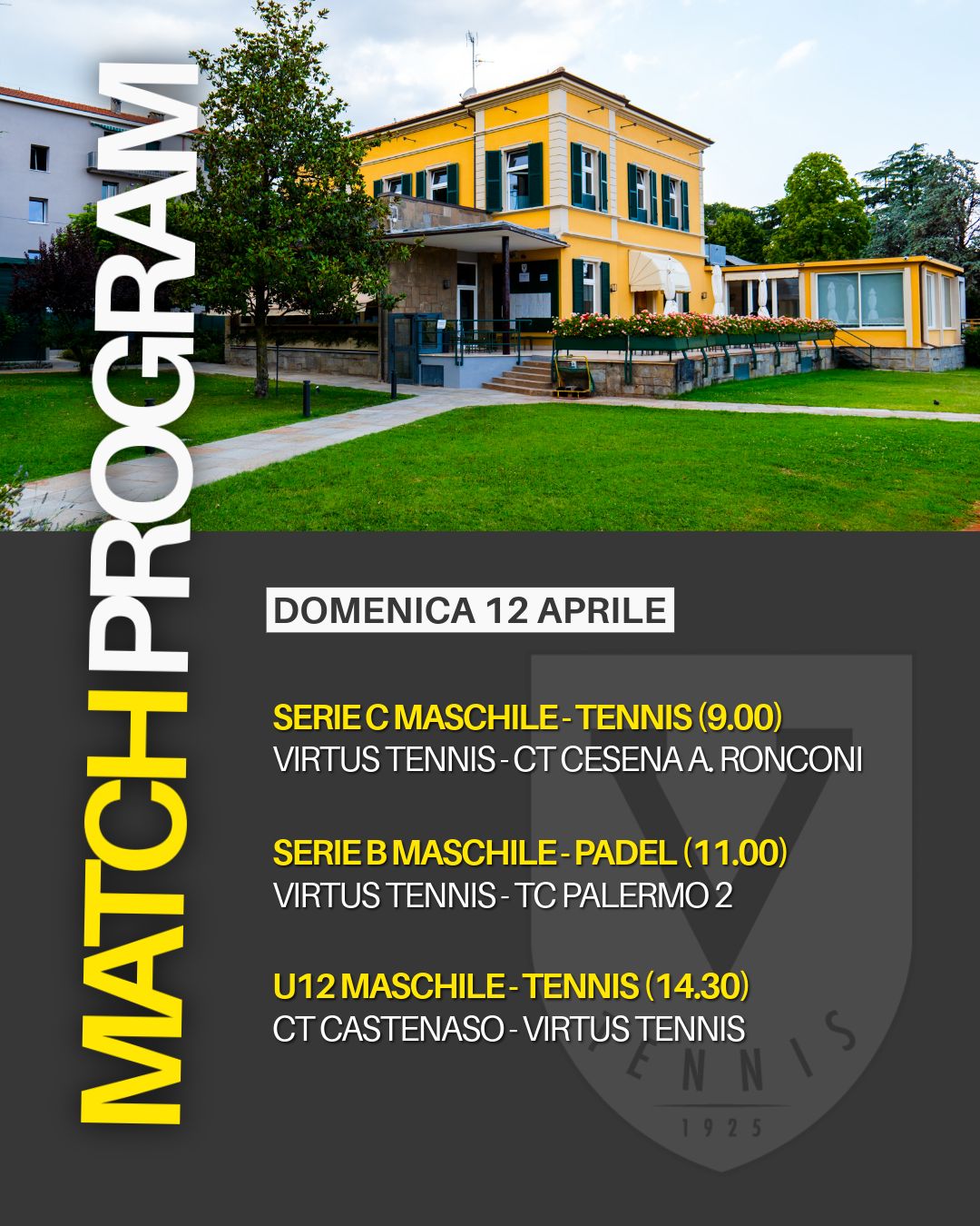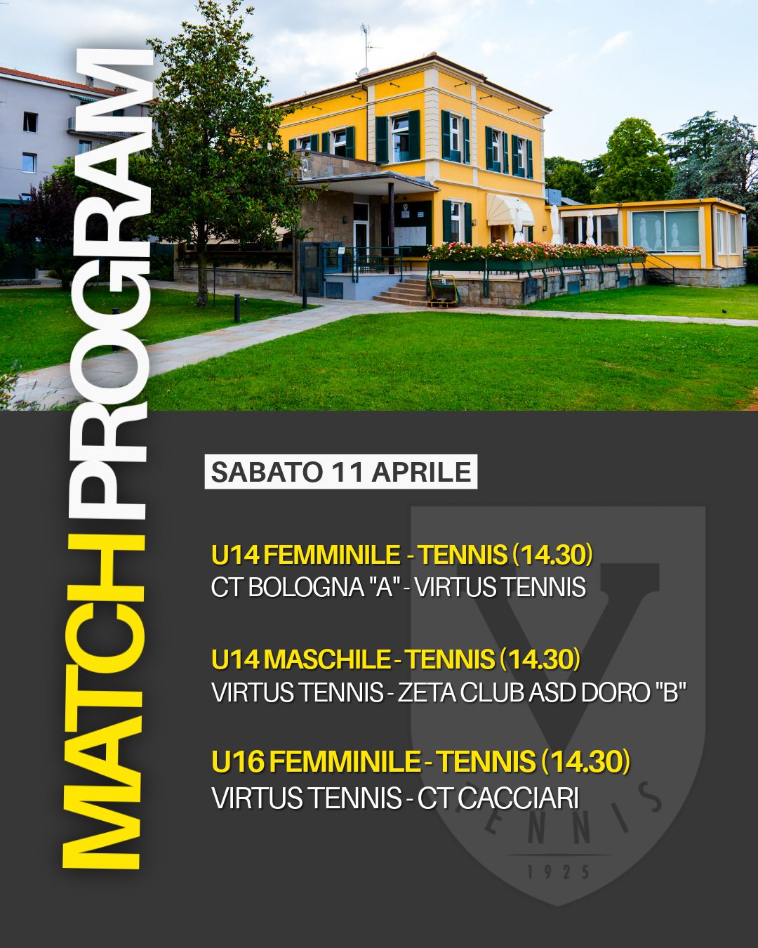 Di seguito è possibile consultare il Match Program delle partite che vedranno protagoniste, nel corso del weekend, le squadre della Virtus Tennis impegnate nei rispettivi Campionati.